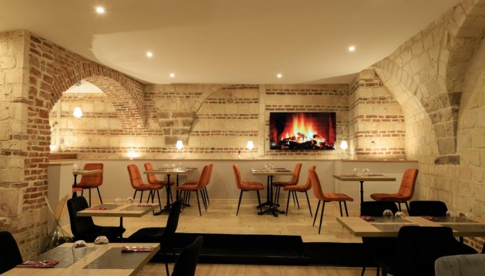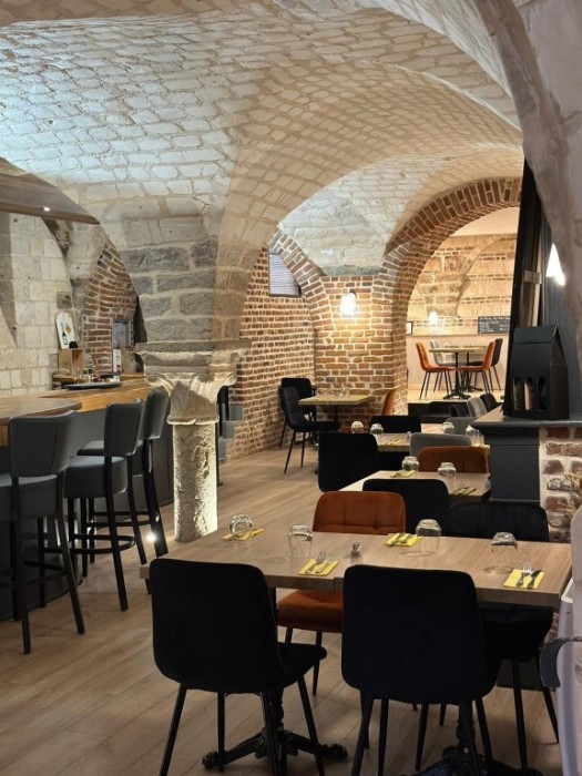 La salle de restauration d’environ 60 couverts est aménagée en cave voûtée, offrant une ambiance authentique avec pierres blanches et cachet incomparable.